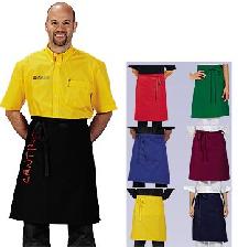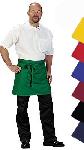 Tablier court en 9 couleurs différentes: bordeaux, noir, jaune, rouge, sable, toffee, bleu, bleu fonçé et vert. Longueur 45 cm / Largeur 80 cm ou Longueur 60 cm / Largeur 80 cm Matériel: 65% polyester / 35% coton